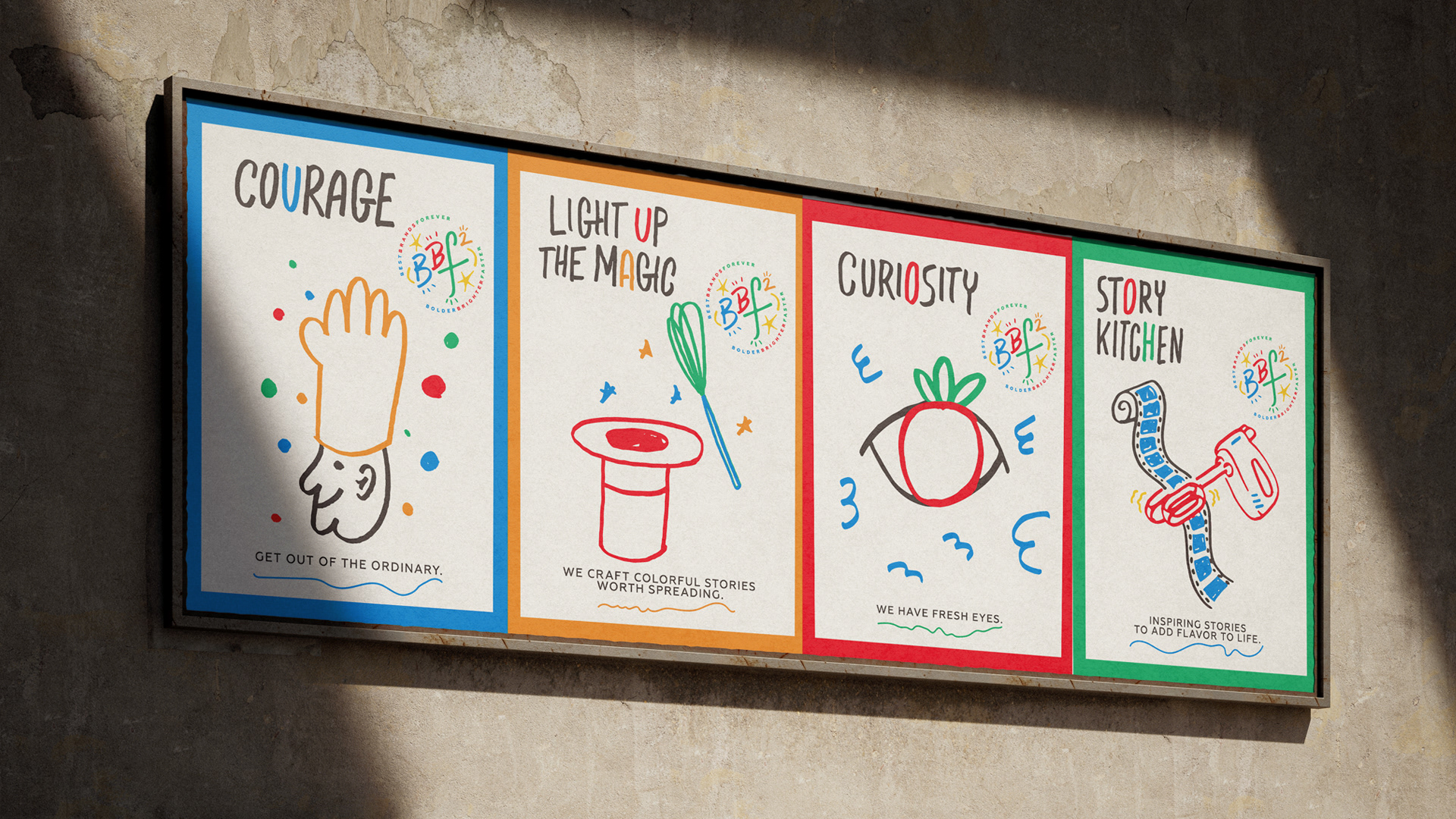I created hand-drawn illustrations and stop-motion animations as part of a brand identity and communication strategy for the internal communication of BBF (Best Brands Forever), which was established by The Coca-Cola Company's marketing team. I also designed a glowing and zippy logo reminiscent of a formula.