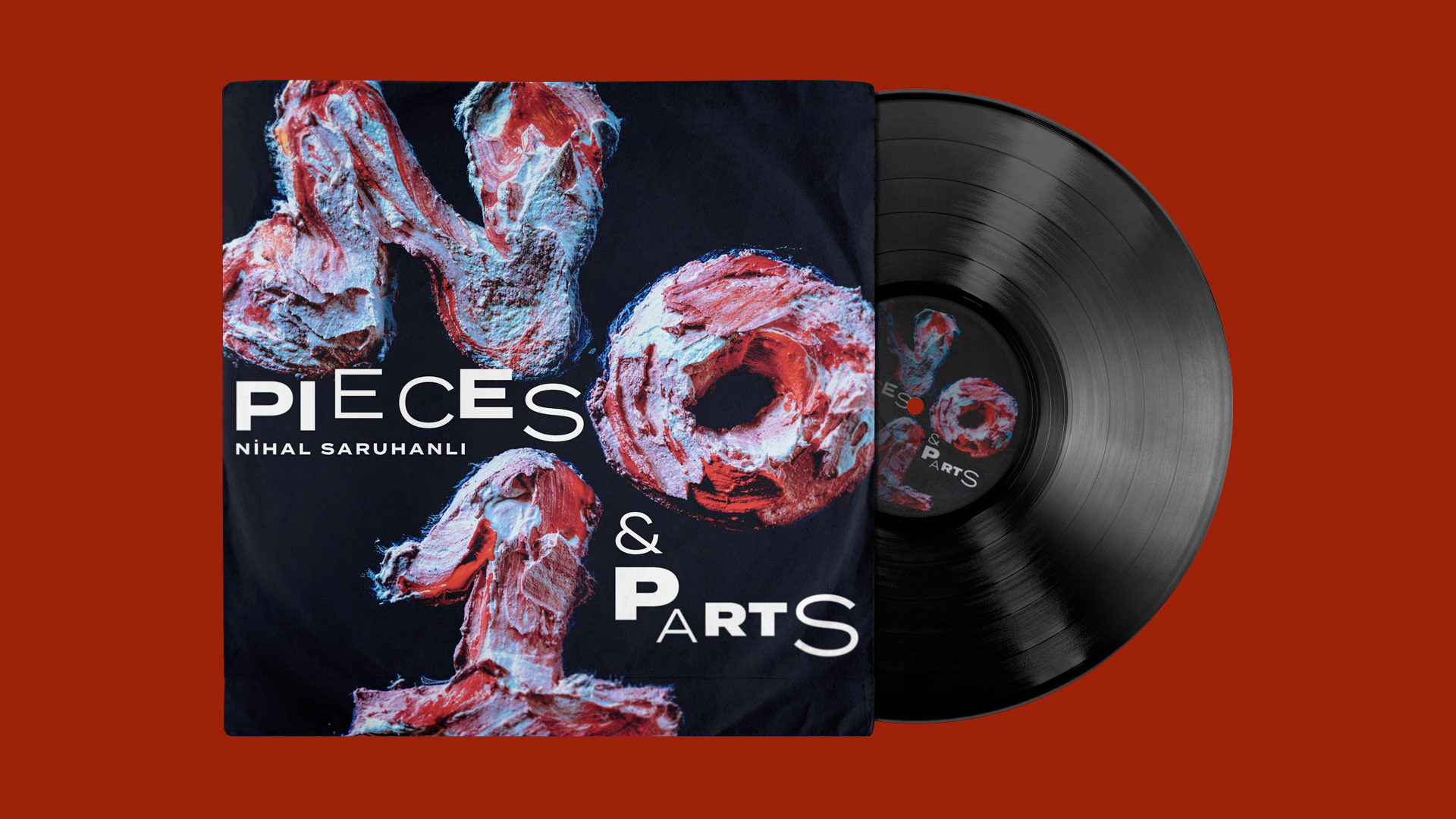 “Pieces & Parts” was conceived as a musical journal. Pieces & Parts No.1 is the first track of this journal and shows its fluidity from start to finish. Befitting to this literary and experimental music, the cover art which reinforces unity and provokes a spur of imagination was inspired by natural and primitive emotions. The human connection to earth is felt through the use of organic material in the typography of No.1, its muddled characters and its effortlessly, spontaneously self-created state are combined with Pieces & Parts’ scattered typographic composition. The image, consistent with the essence of the track’s sound, was designed as a reflection of its innateness and fluidity.