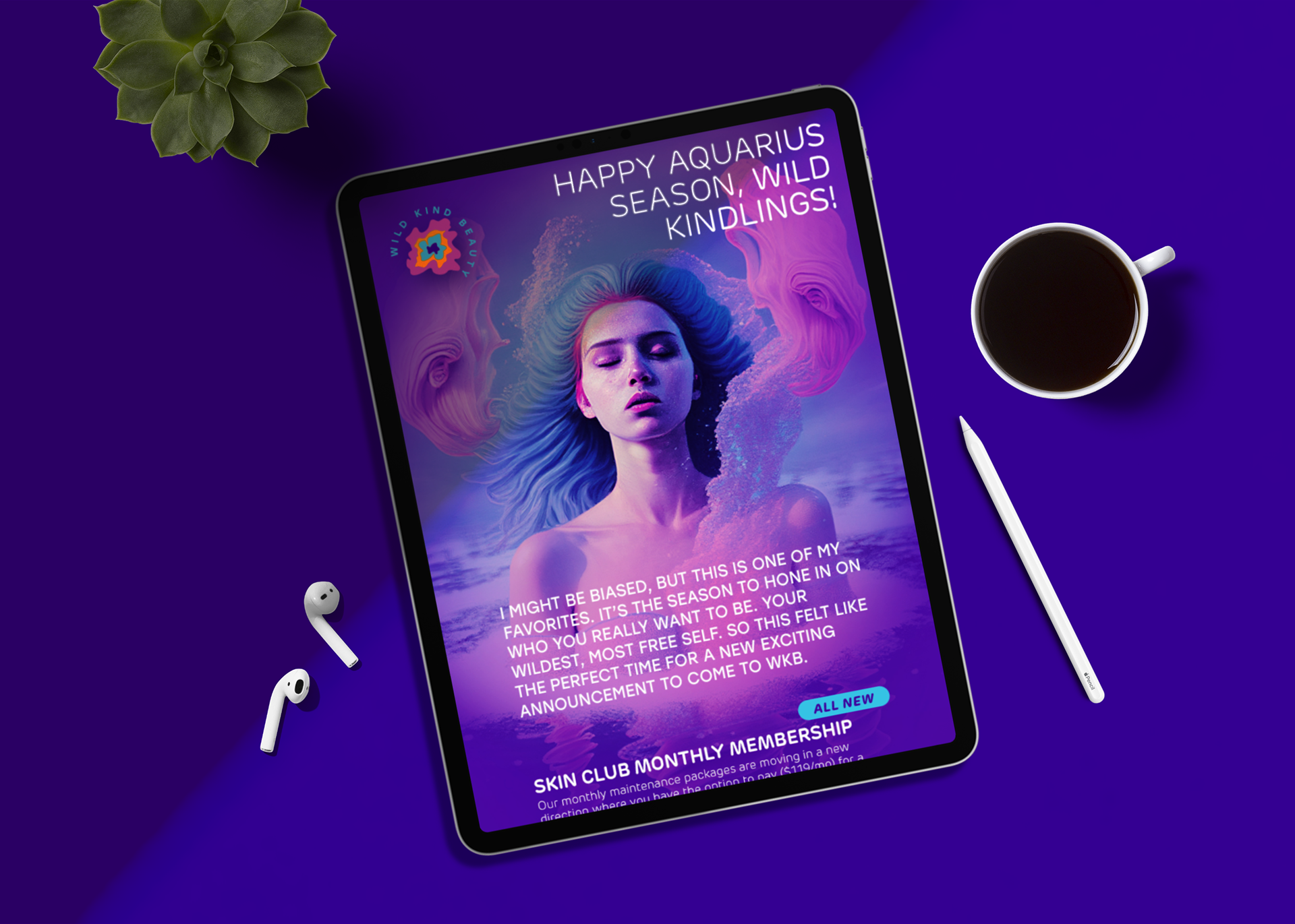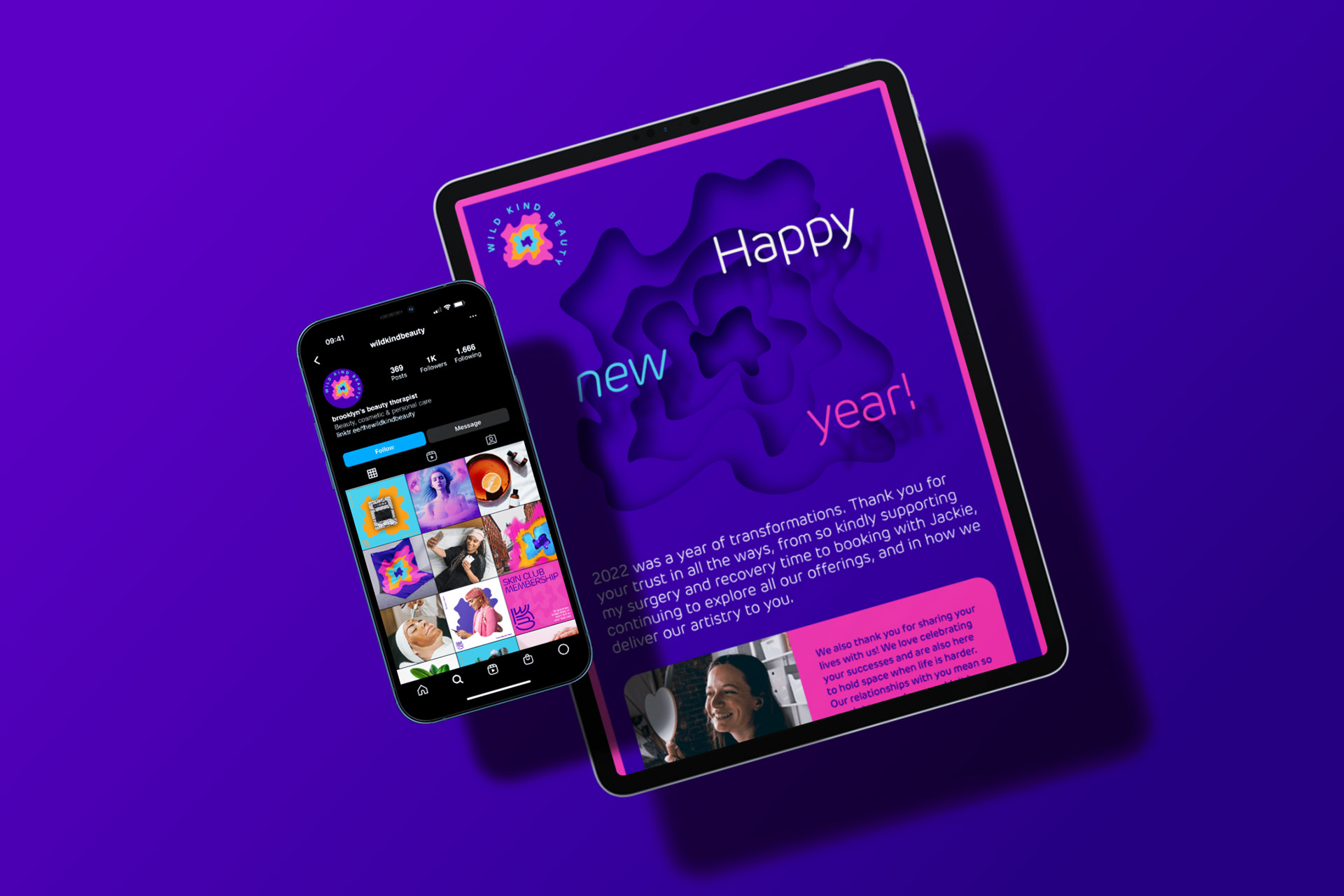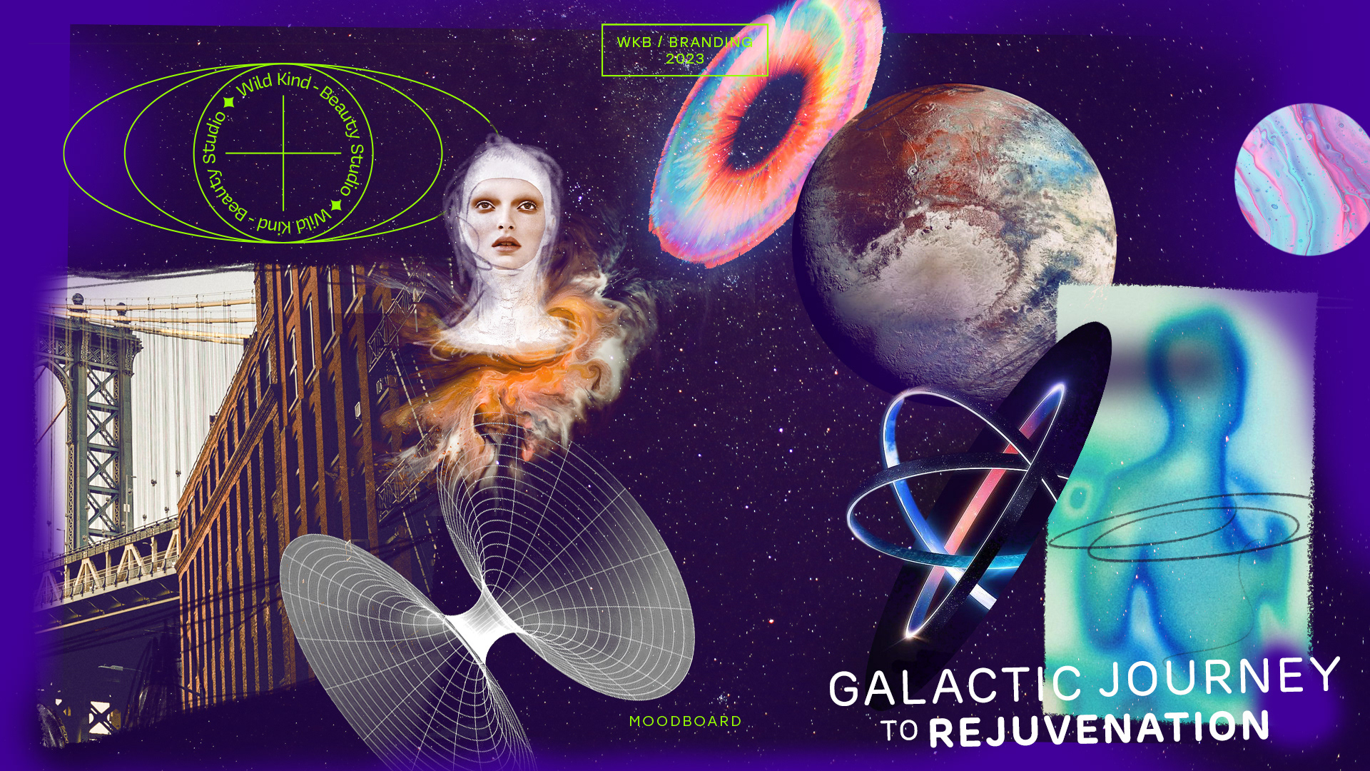 Wild Kind Beauty, Brooklyn-based beauty studio specializing in focused corrective skin therapy, customized brow artistry, and facial/body waxing. In line with the renewal needs of the brand, we have completely changed the visual identity. We made a connection between the brand identity and the concept of beauty treatment as a true experience, from the beginning to the last moment. Inspired by wormholes in space, we made a reference to WKB's beauty rituals' transformation process.
