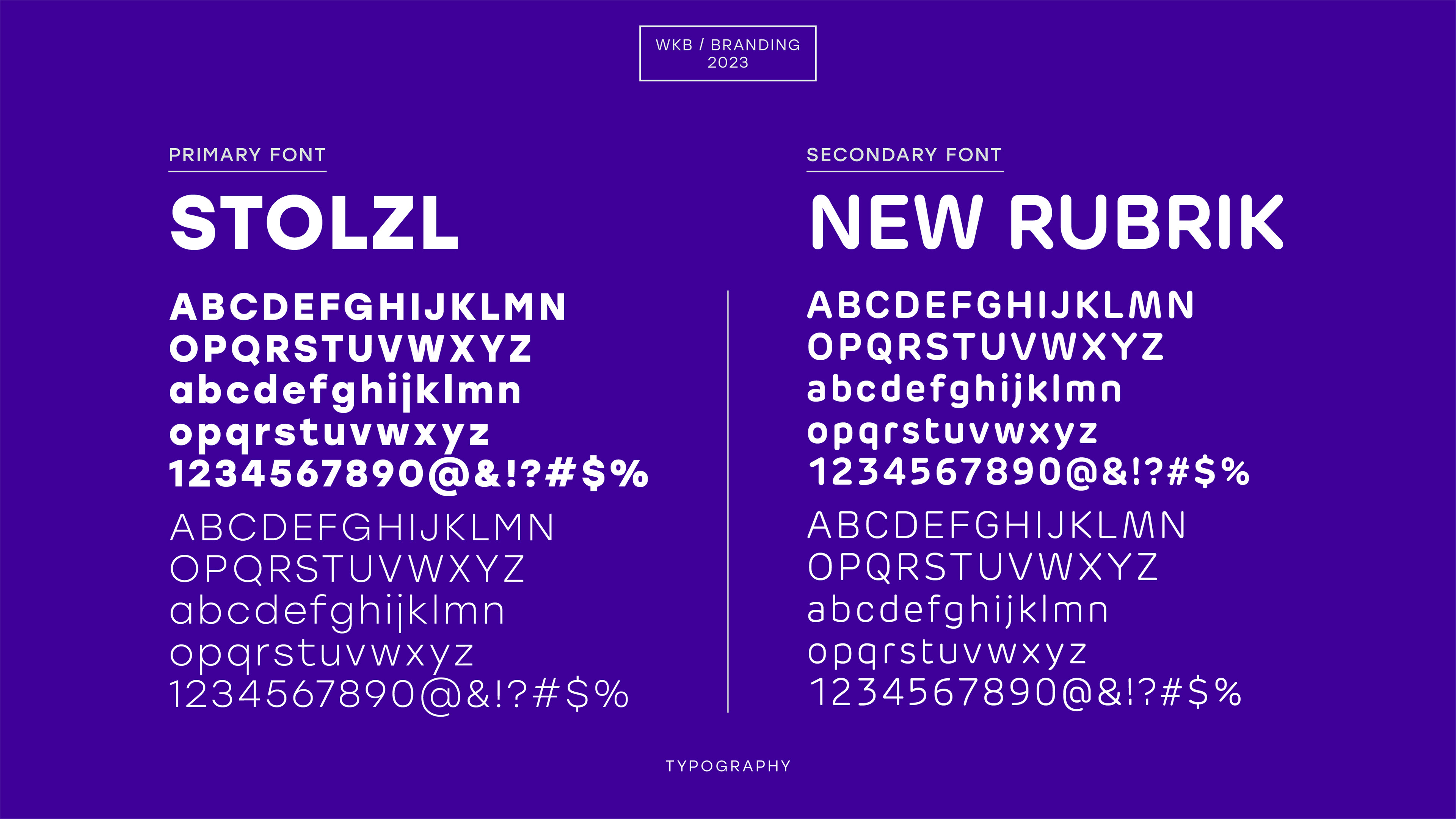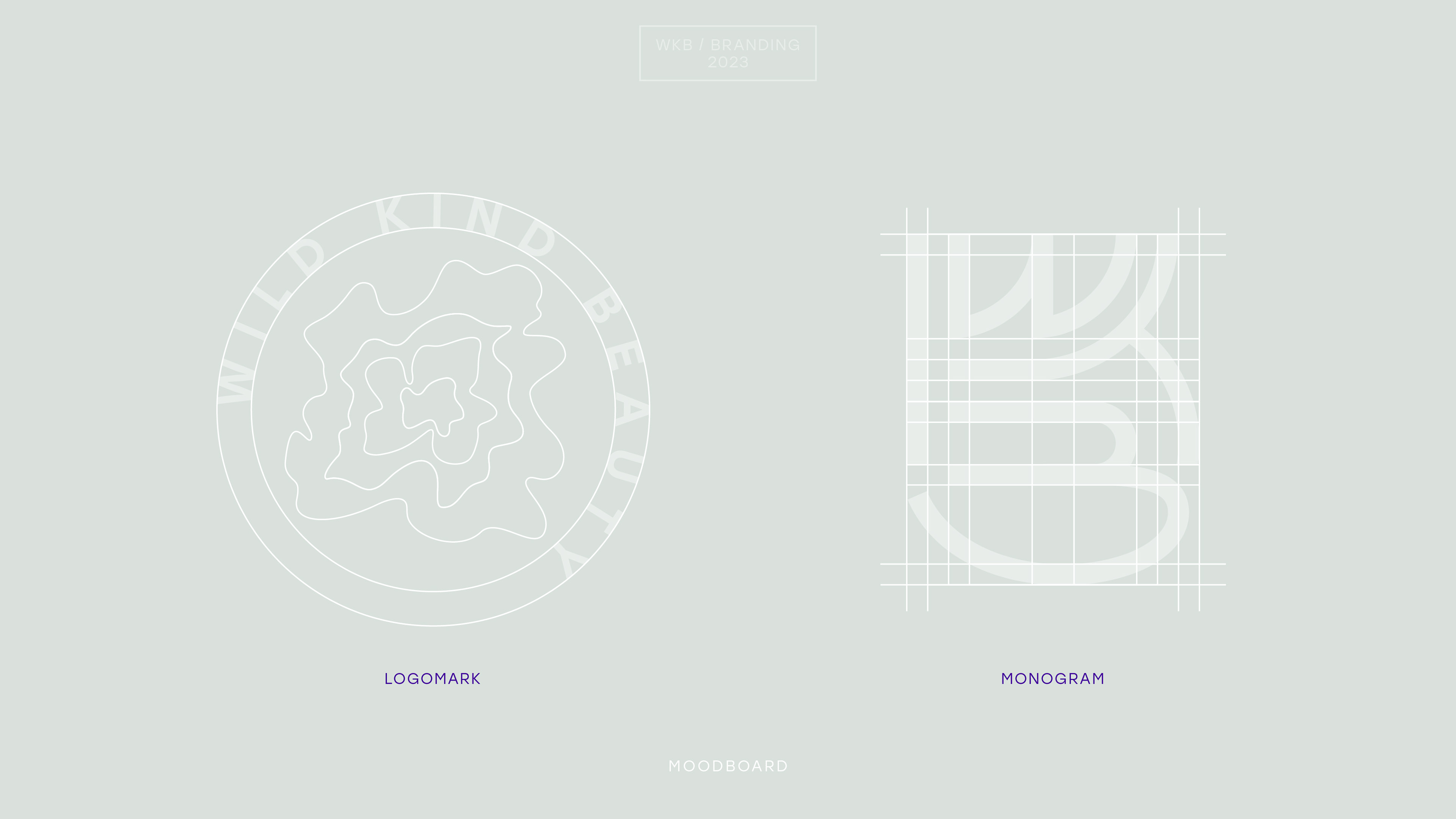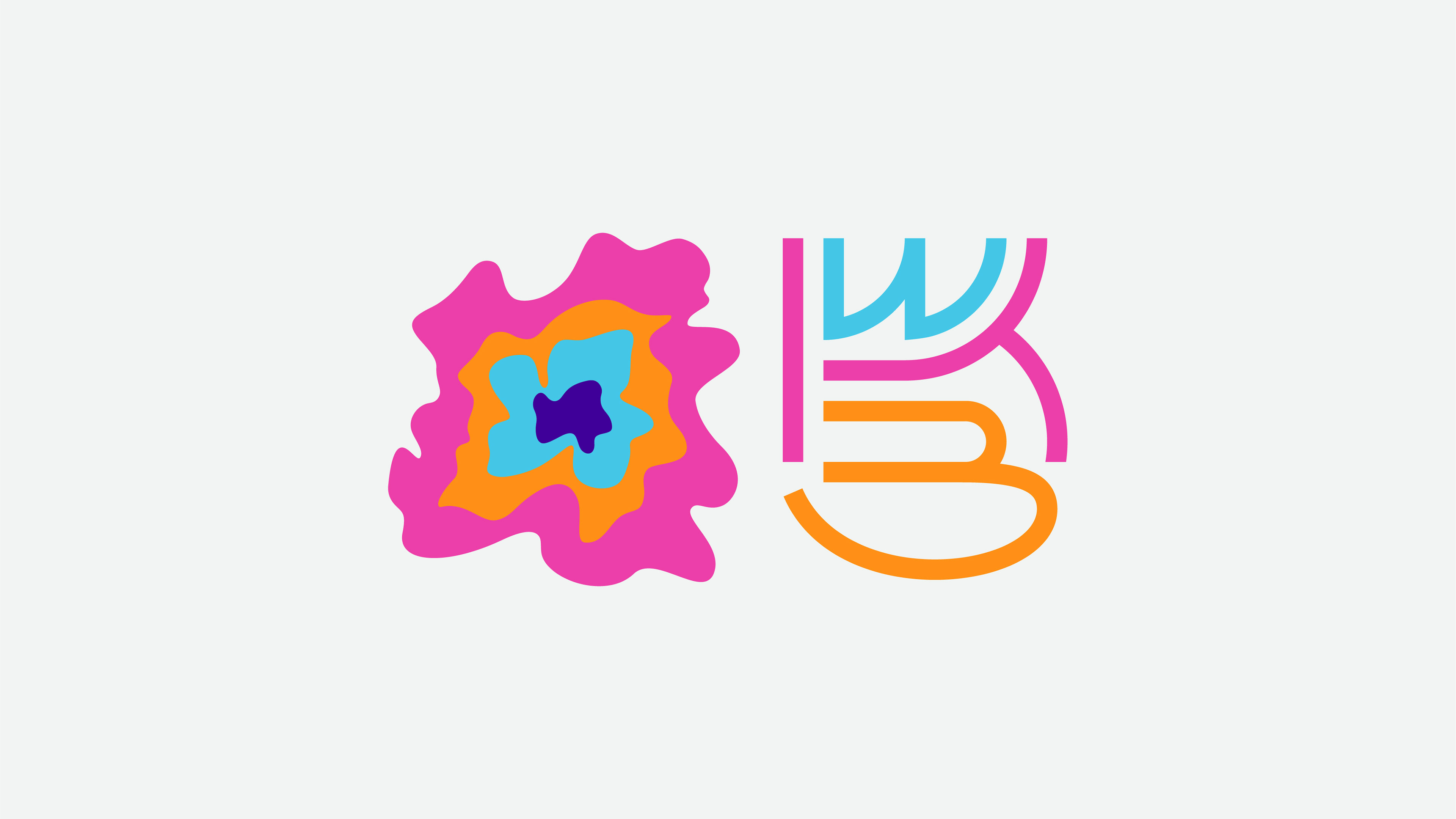 Combining the logo's several layers and vibrant color palette, the WKB Monogram is constructed from a condensed typography made up of initials.